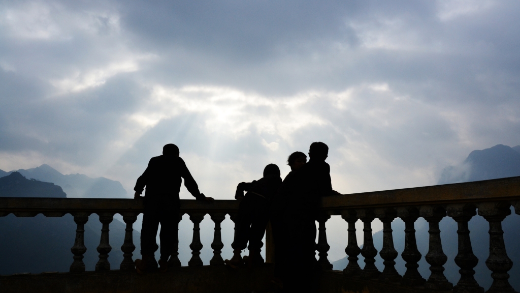 Tôi gặp bốn em nhỏ người Mông, ngay ở đỉnh cao nhất của Đường Hạnh Phúc. Đi chân trần, mặc áo mỏng, cổ hở sâu, không đội mũ.